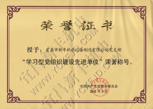 4月27日,宜都市舉行2010年度“爭當先鋒號、建功新宜都”勞動競賽活動表彰大會,宜昌市新豐機電設備制造有限公司結構車間被宜都市總工會授予“工人先鋒號”稱號,宜昌市新豐機電設備制造有限公司線切割成型加工員工辛世蘭獲“革新一項操作方法獎”、宜昌京都電子科技有限公司技術部部長薛傳獲“創造一批優質產品獎”…