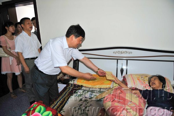 7月1日,在紀念建黨90周年之際,宜昌市新豐機電公司黨支部書記、董事長張本新同志,帶領公司15名黨員看望和慰問了陸城中筆社區五組77歲癱瘓在床的老黨員朱裕英同志。將全體黨員捐獻的慰問金2000元送到朱裕英同志手中。